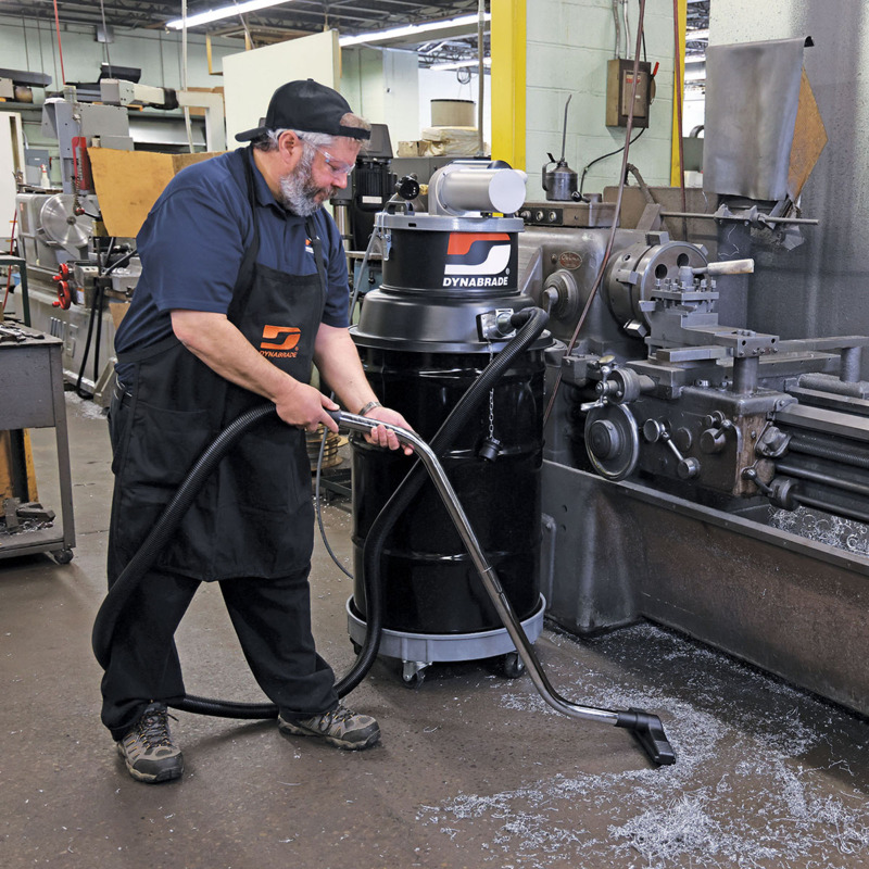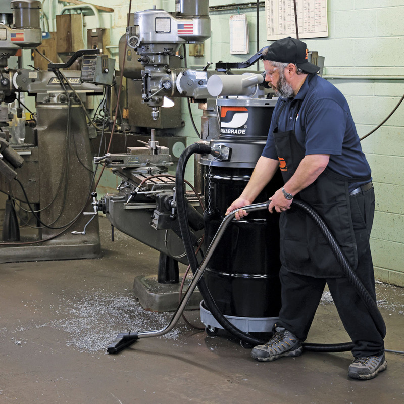 • Dynabrade’s family of DrumVac Kits are a multi-industry clean air solution with fully integrated features designed to keep an operator working without being concerned with the arduous task of changing out a vacuum bag in high collection scenarios. Used in conjunction with a 55-gallon drum (sold separately), this system lends itself to one of the largest capacity portable dust and dry chip collection systems in the industry.